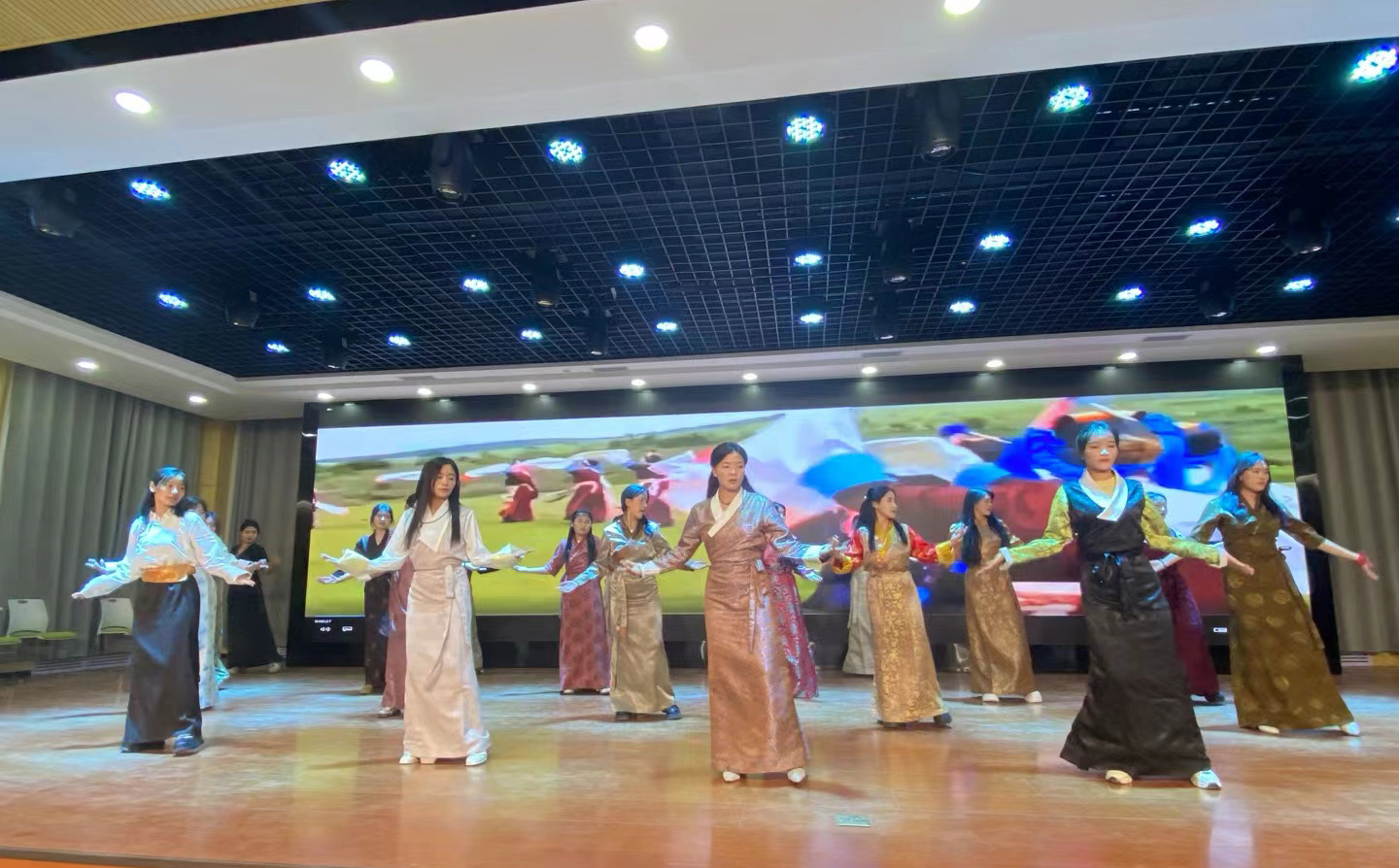 活动在各民族服饰展演中拉开序幕,演出现场气氛活跃、热闹非凡,舞蹈《雪域欢歌》、歌曲《漠河舞厅》、舞蹈《奔腾》、歌曲《春风十里》《阿尔泰苍狼》、舞蹈《裕固欢歌》《晓》《美丽的雪域》等精彩的文艺节目博得观众的热烈掌声。一首《我和我的祖国》唱出了同学们浓浓的爱国情,彰显了各民族共同团结奋斗、共同繁荣发展的信心。活动过程中,社团为2024届毕业生代表送上洁白的哈达,祝福毕业生们怀揣梦想,筑梦远航。