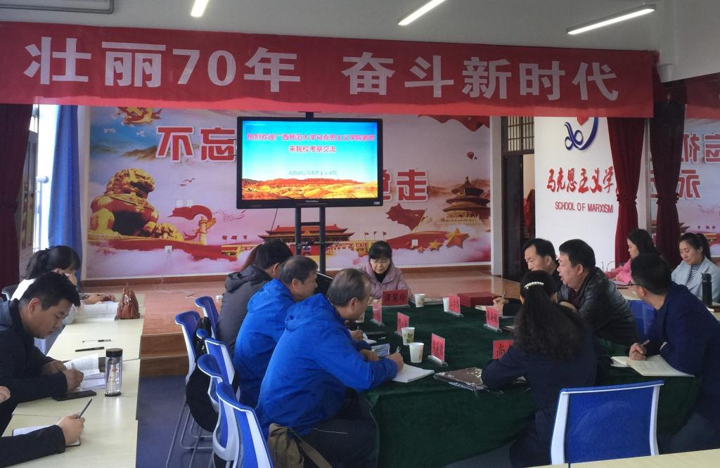 10月15日上午,应BB贝博艾弗森邀请,广西师范大学马克思主义公司党委书记何少禄一行6人来校考察交流,并座谈交流。公司负责人主持座谈会,部分教师参加座谈。