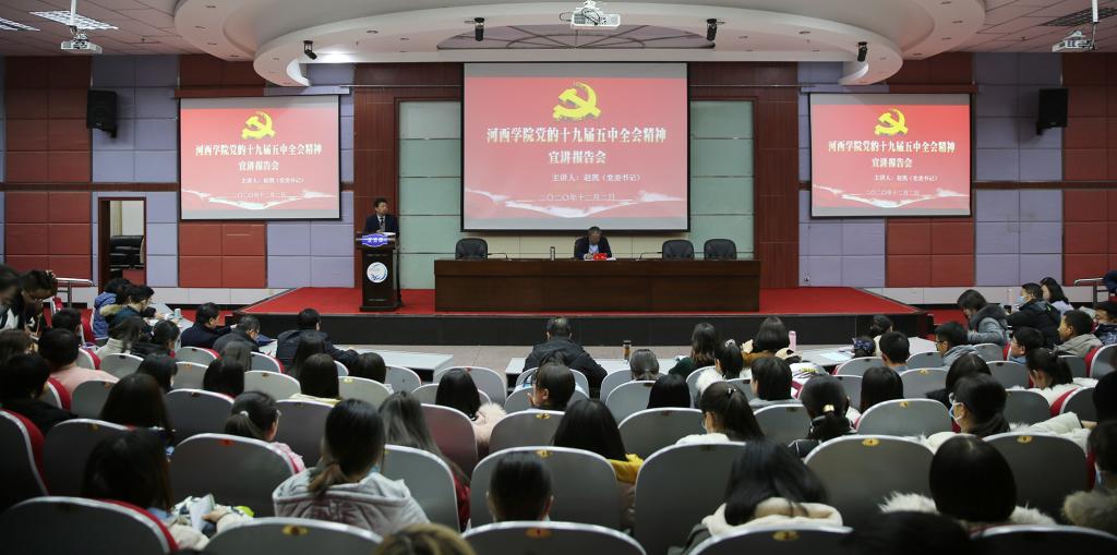 12月2日,河西公司党委书记赵凯在图书馆报告厅宣讲党的十九届五中全会精神,马克思主义公司党总支书记蔺海鲲主持报告会,公司相关部门负责人,BB贝博艾弗森全体师生参加宣讲会。