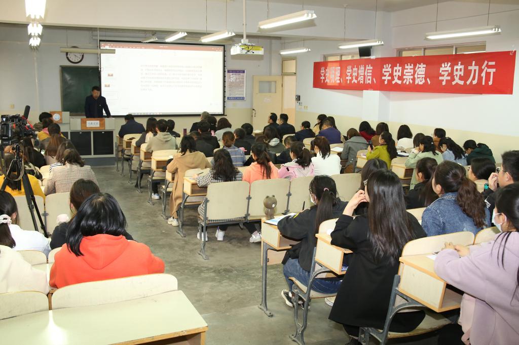 会议要求,全院师生党员要提高政治站位,深入学习习近平总书记在党史学习教育动员大会上的重要讲话精神,充分认识开展党史学习教育的重要意义;重温历史,深刻体悟百年党史中蕴含的丰富智慧和力量,充分理解中国共产党为什么“能”、中国特色社会主义为什么“好”,从而不断增强“四个意识”、坚定“四个自信”、做到“两个维护”。