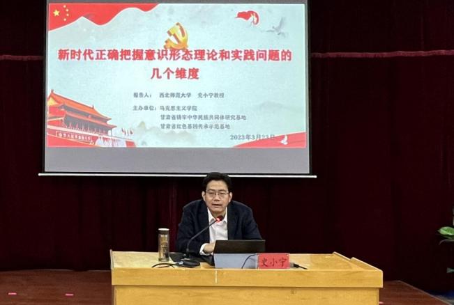 史小宁教授的报告围绕意识形态概念的变迁与界定、新时代我国意识形态建 设的现实依据、中国共产党意识形态建设的历史脉络、正确认识意识形态建设的 相关理论问题、中国共产党意识形态建设的实践经验等问题展开,全面阐述了意 识形态的概念变迁与科学界定。史教授从中国共产党成立100年来的发展历程出 发,详细梳理了十八大以来习近平总书记关于意识形态和思想政治教育工作的重 要论述,指出新时代加强意识形态工作关涉“培养什么人、为谁培养人、怎样培 养人”的根本问题,从问题导向原则出发,着重阐释了正确对待马克思主义“过 时论”、马克思主义在中国的传播“偶然论”、共产主义“缥缈论”等理论问 题。最后,史教授系统总结了党的意识形态建设实践经验,强调高校是党的意识 形态工作的前沿阵地,必须坚持把立德树人作为中心环节,坚持把思想政治工作 贯穿公司产品全过程,强化思想引领,筑牢意识形态主阵地。提出要持续改进学 校思想政治教育工作,加强公司思想政治理论课建设,切实加强党对意识形态工 作的全面领导,充分发挥社会主义意识形态的核心价值引领作用。
