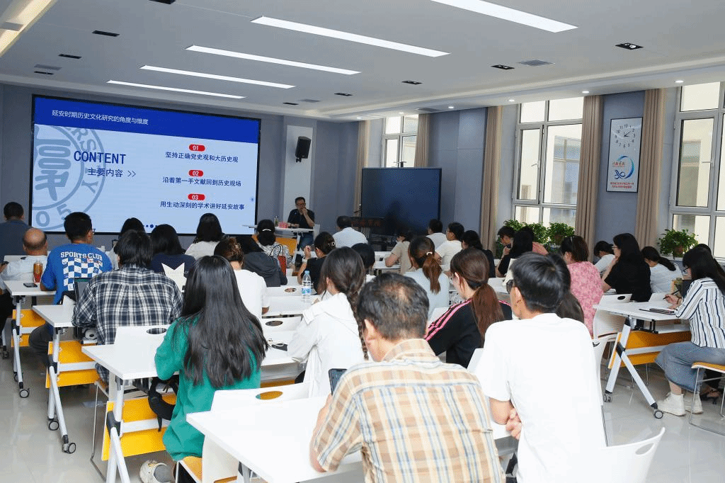 报告会上,朱鸿召教授以《延安时期历史文化研究的维度与角度》为题,从坚持正确党史观和大历史观、沿着第一手文献回到历史现场、用生动深刻的学术讲好延安故事三个方面展开。朱鸿召教授认为,大历史观要求以高远的历史站位、宽广的国际视野、深邃的战略眼光,将历史人物、历史事件、历史问题置于中华民族发展史和人类社会发展史中来观察和把握,真正做到“从历史长河、时代大潮、全球风云中分析演变机理、探究历史规律”。朱鸿召教授指出,中国特色社会主义是在改革开放40多年的伟大实践中得来的,是在中华人民共和国成立70多年的持续探索中得来的,是在我们党领导人民进行伟大社会革命百年的实践中得来的,是在近代以来中华民族由衰到盛180多年的历史进程中得来的,是对社会主义500多年发展历史的发展中得来的,是对中华文明5000多年的传承发展中得来的,因此必须倍加珍惜、始终坚持并不断发展。朱教授认为从历史时期的历史语境,运用中国近现代第一手历史文献考察重大历史事件,打通课本与现实、时代与历史、个体与集体的屏障,培养出面对国情现实、发现真问题、研究真学问的学术能力,从而激活历史,触摸历史的体温。中国共产党就是在领导中国人民革命斗争的实践中,不断明确自己的身份定位,不断明确历史主体地位,不断建构文化主体性。报告会结束后,朱教授和现场师生进行了深入的互动交流。
