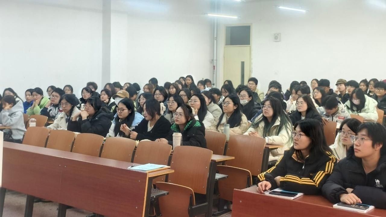 豆宝珍结合自身丰富的创业实践,以生动的案例,回顾了如何从一个创意想法出发,历经市场调研、团队组建、商业模式打磨,最终创办公司的奋斗历程。他特别提到,要将坚定的理想信念、科学的分析方法和为人民服务的宗旨意识,作为创业过程中的精神力量。在互动环节,同学们踊跃提问,就“文科生如何寻找科技赛道中的创业机会”等问题与豆宝珍进行了深入交流,现场气氛热烈。